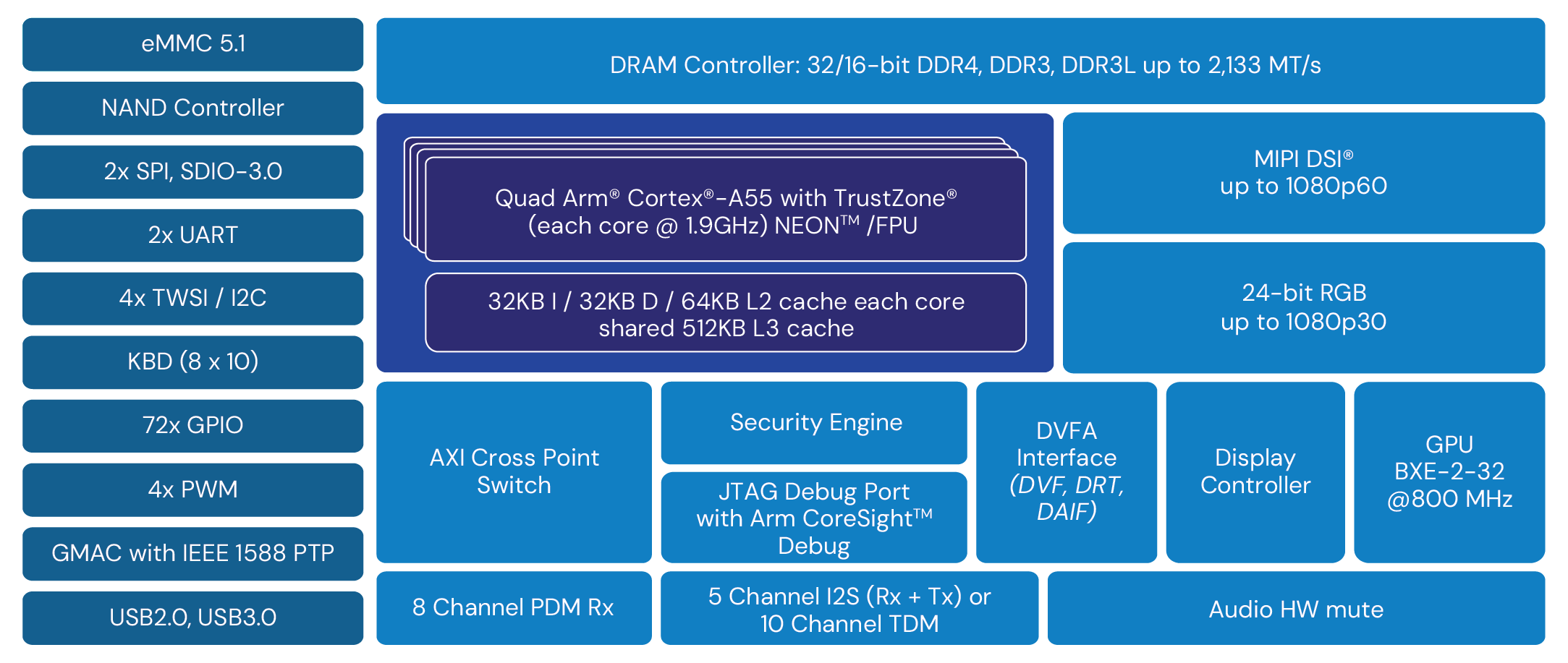 - DRAM Controller: 32/16-bit DDR3/DDR3L-1866/DDR4-2133